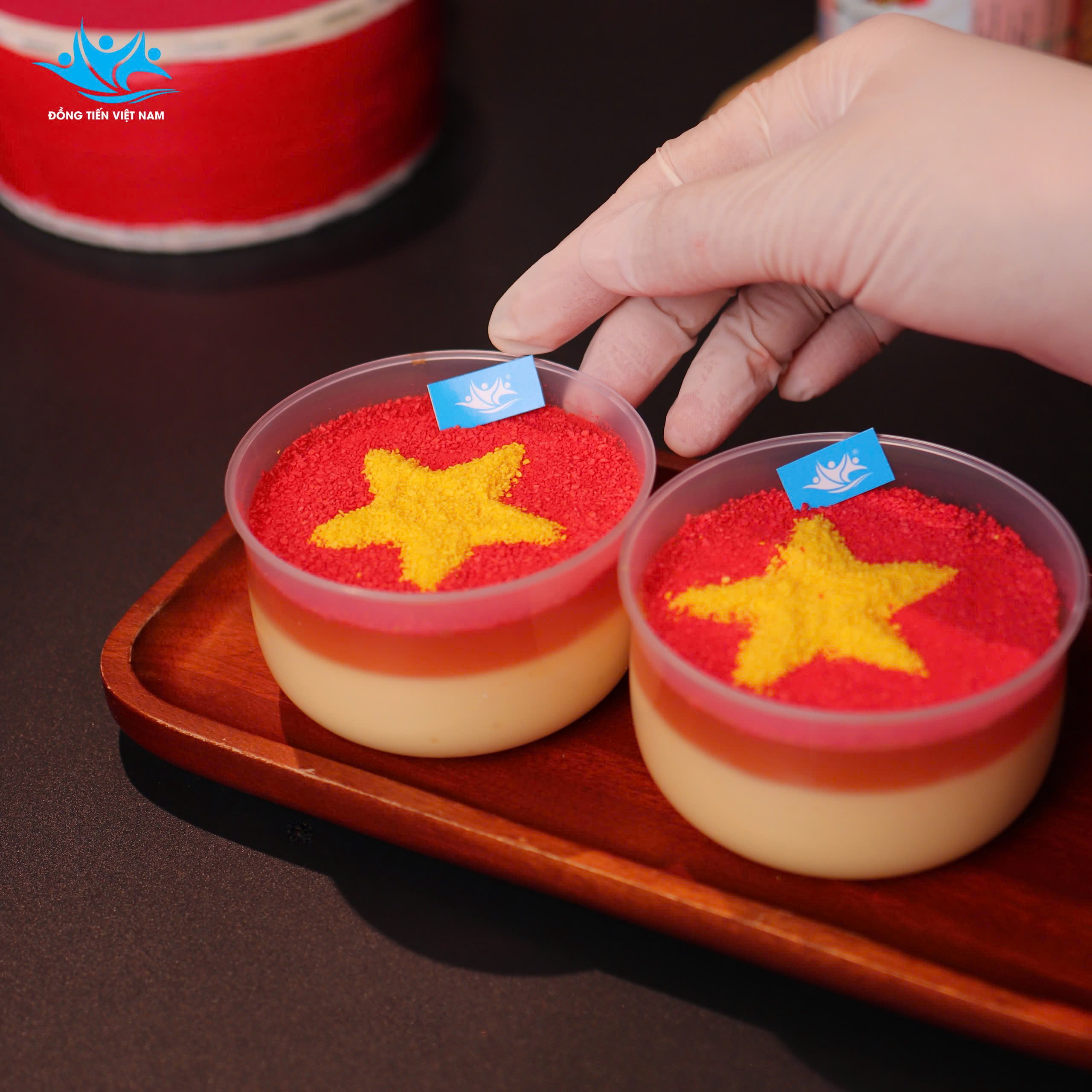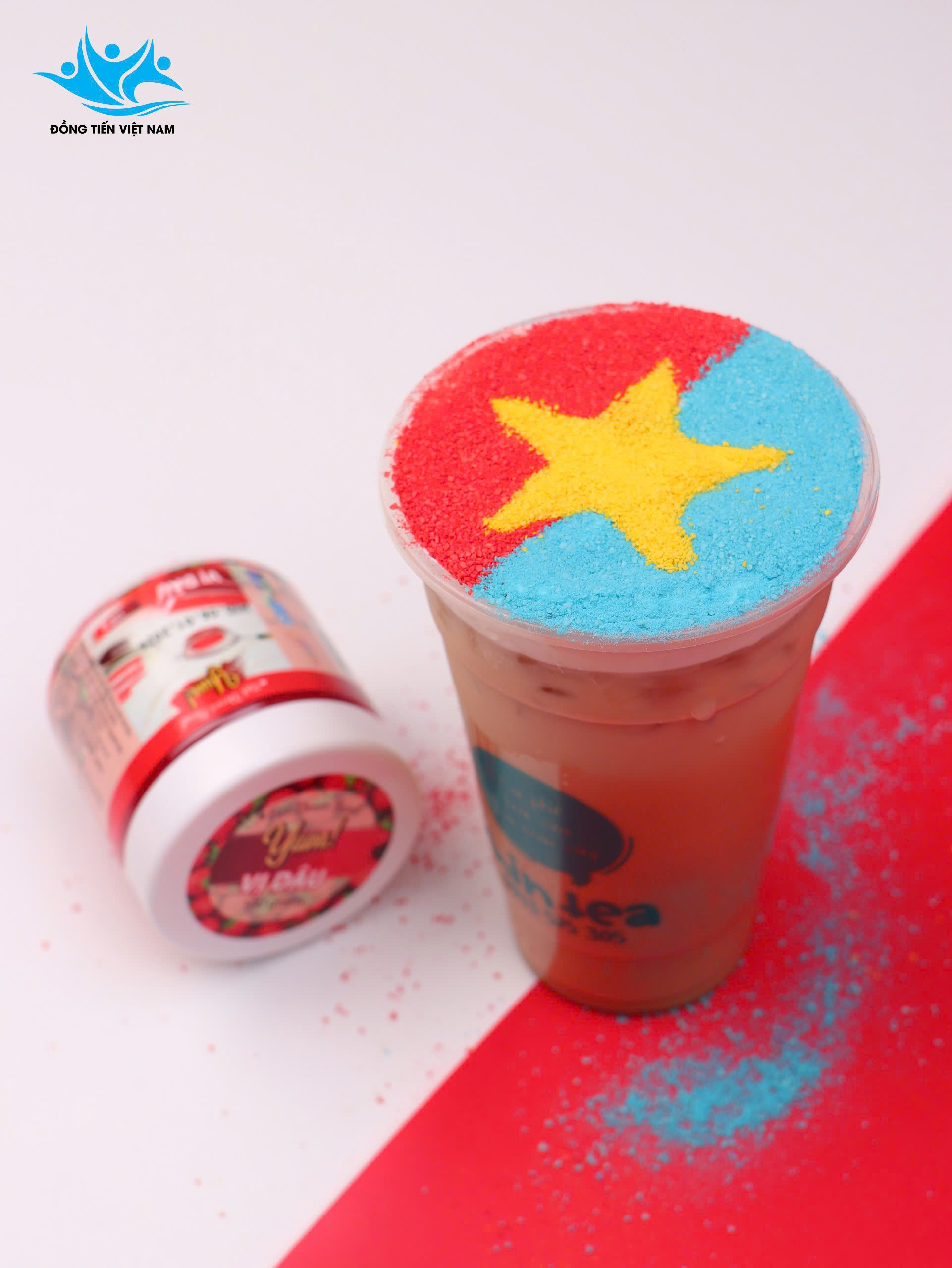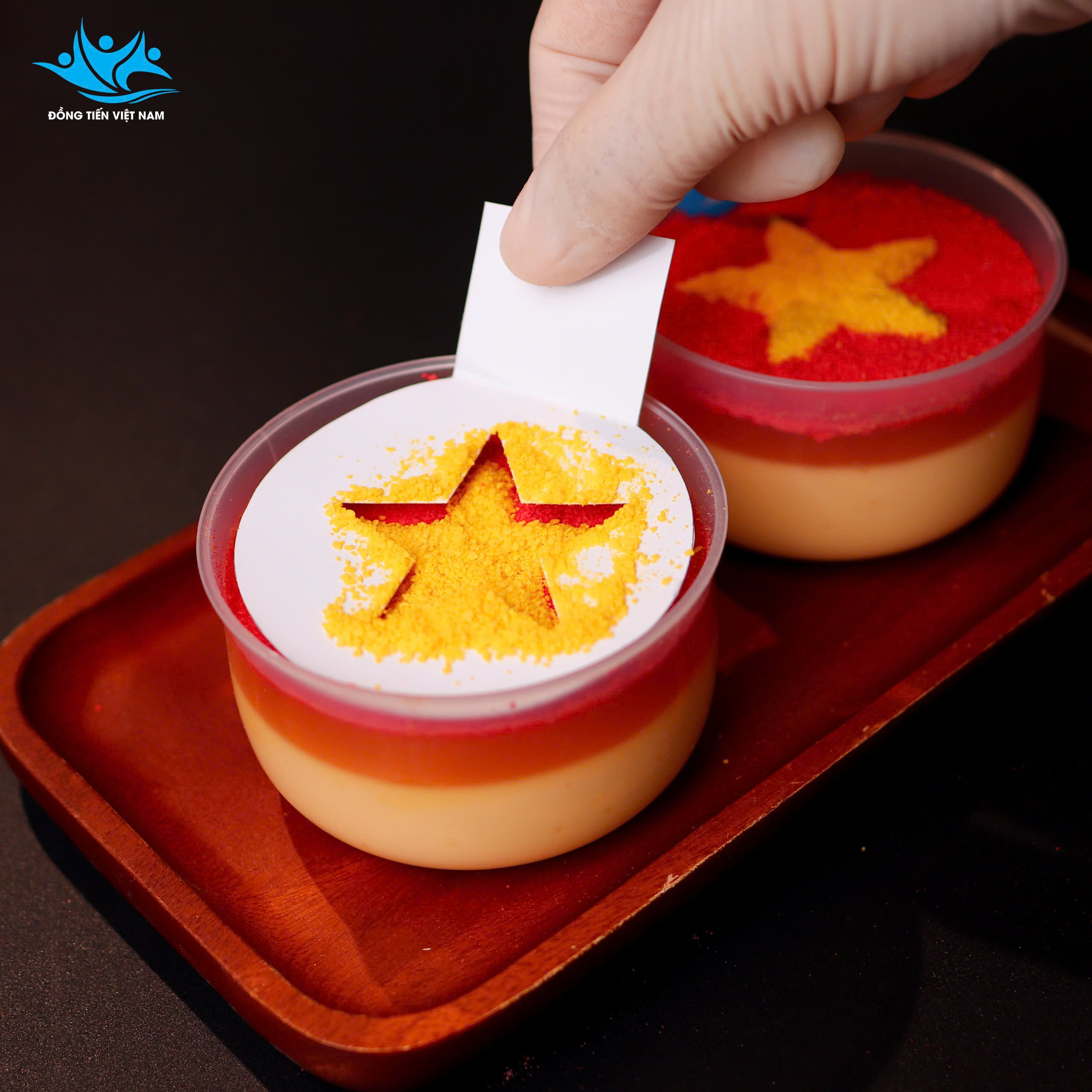 - Tạo hiệu ứng giống “lá cờ Việt Nam” ngay trên mặt ly