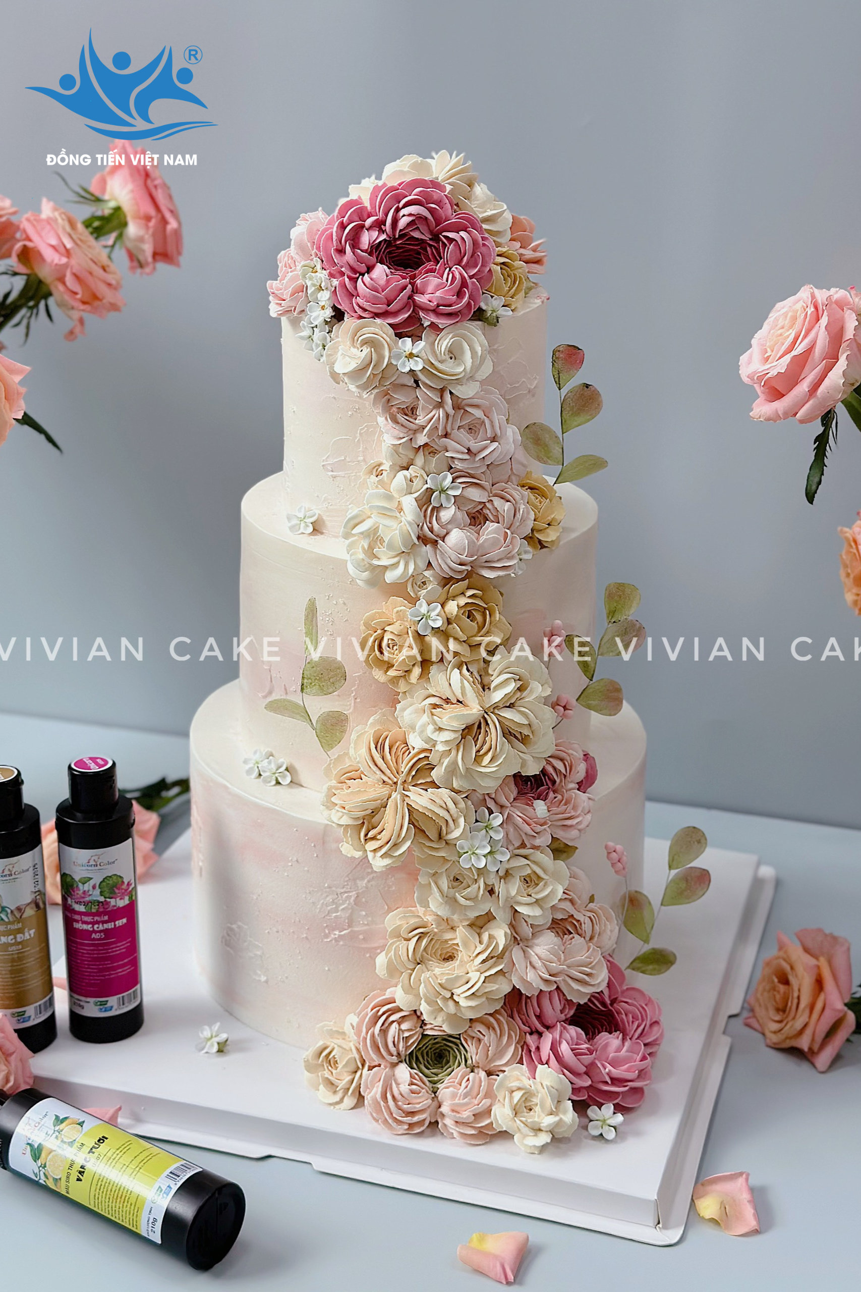 \Mẫu bánh kem đám cưới thường có thể được đặt trên một tấm đế bằng hoặc trang trí thêm những chi tiết decor nhưng hoặc nến. Người làm bánh tạo ra từng chi tiết một cẩn thận để đảm bảo mẫu bánh đám cưới hoàn hảo và đậm chất nghệ thuật.