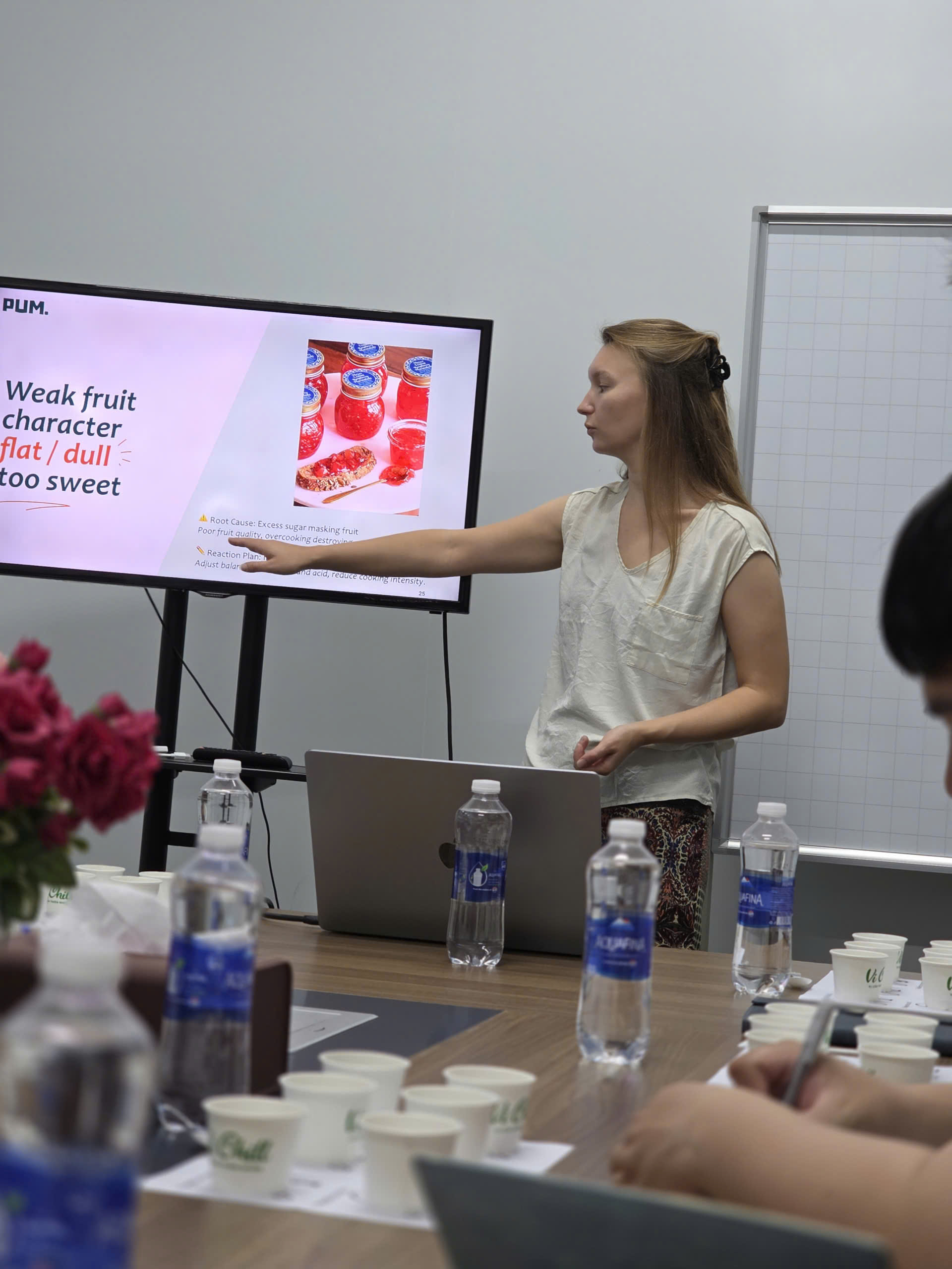 Với tinh thần đó, bộ phận sản xuất của Unifresh đã tổ chức buổi gặp gỡ và trao đổi cùng chuyên gia thẩm định nhằm đánh giá toàn diện sản phẩm mứt trái cây có xác. Đây là một trong những sản phẩm chiến lược của Unifresh, nổi bật nhờ hương vị tự nhiên, phần xác trái cây rõ rệt và giá trị dinh dưỡng cao.