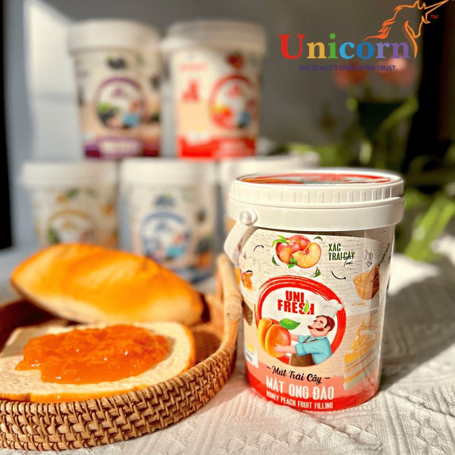 Mứt dâu, mứt việt quất, mứt cam hay mứt xoài không chỉ mang lại màu sắc tự nhiên mà còn bổ sung hương vị tươi ngon cho bánh. Bạn có thể dùng mứt để phết lên mặt bánh, tạo hình hoa quả hoặc kết hợp với kem tươi. Đây là lựa chọn trang trí bánh vừa đơn giản vừa giúp bánh thêm phần hấp dẫn.