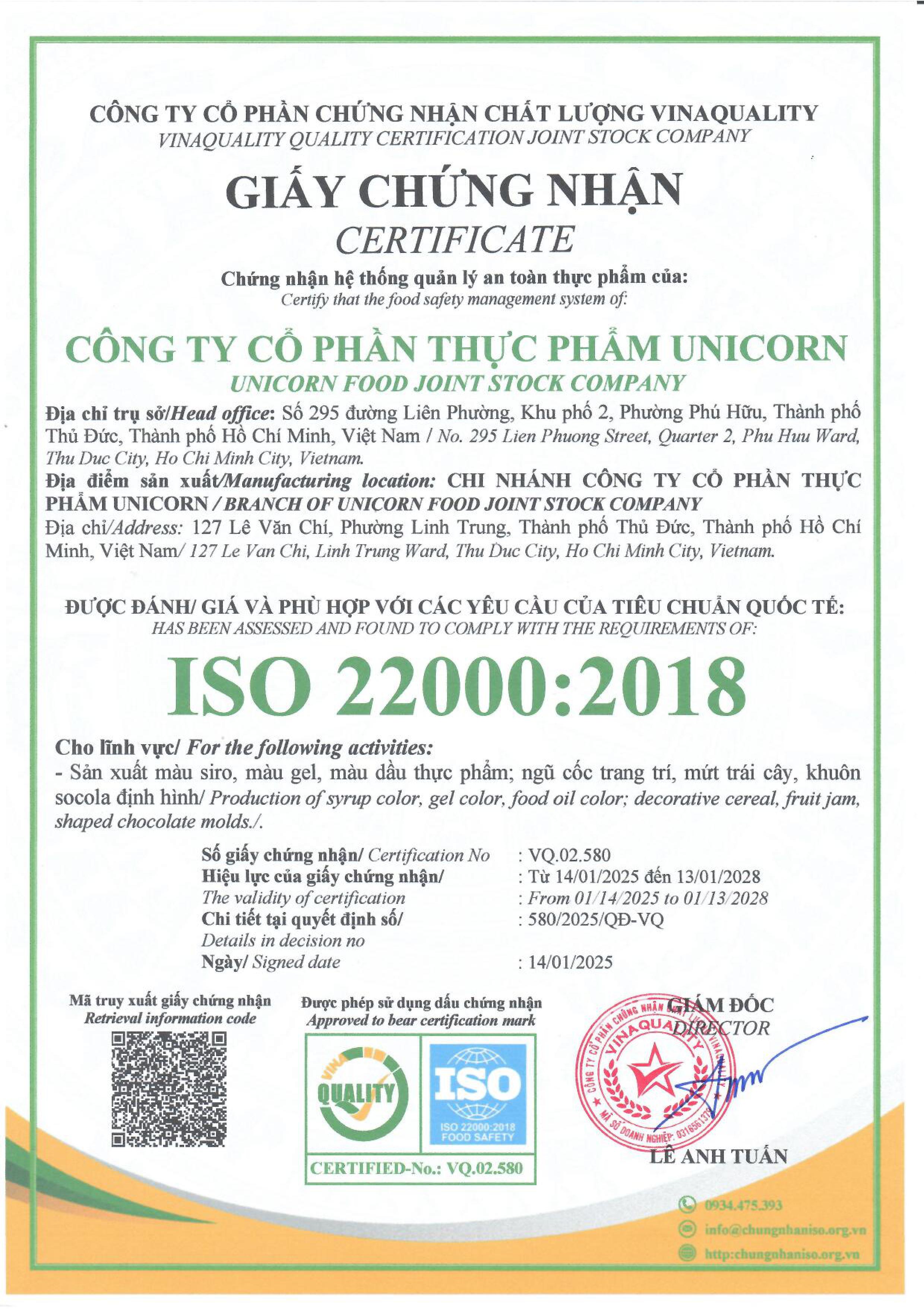 1. Đạt tiêu chuẩn ISO 22000:2018 trong sản xuất màu thực phẩm