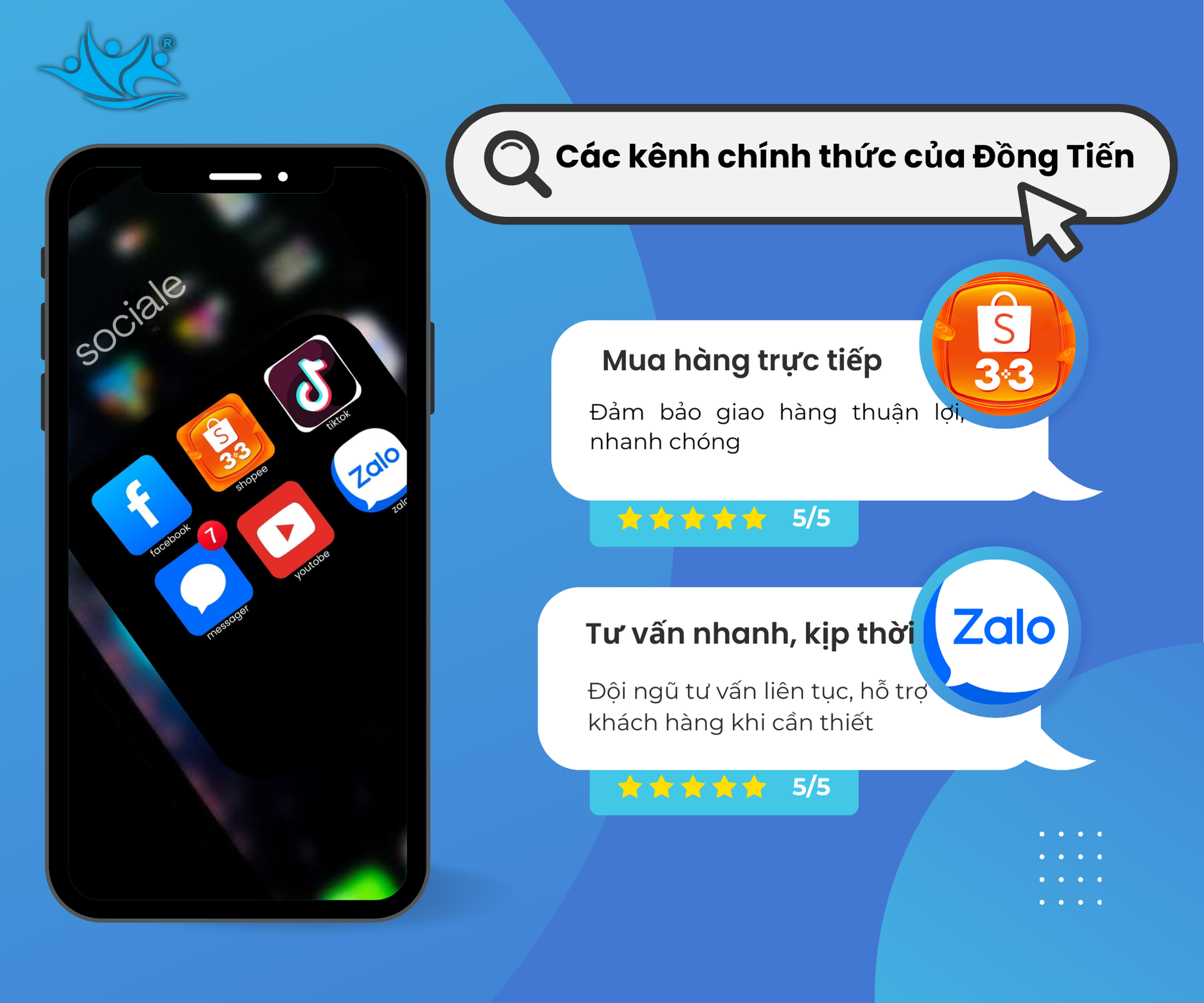 - Liên hệ trực tiếp với đội ngũ tư vấn: Nếu bạn cần tư vấn về sản phẩm phù hợp với nhu cầu sử dụng, đội ngũ nhân viên sẵn sàng hỗ trợ bạn thông qua các kênh chính thức của Đồng Tiến Group như sau:
